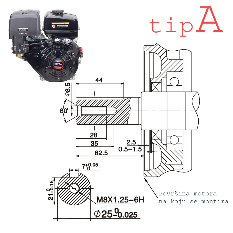 Nominalna snaga 8.2kW pri 3600 o/min